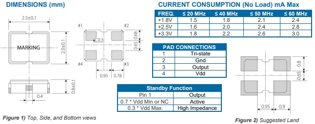 - 晶振尺寸:2.5*2.0*0.9mm