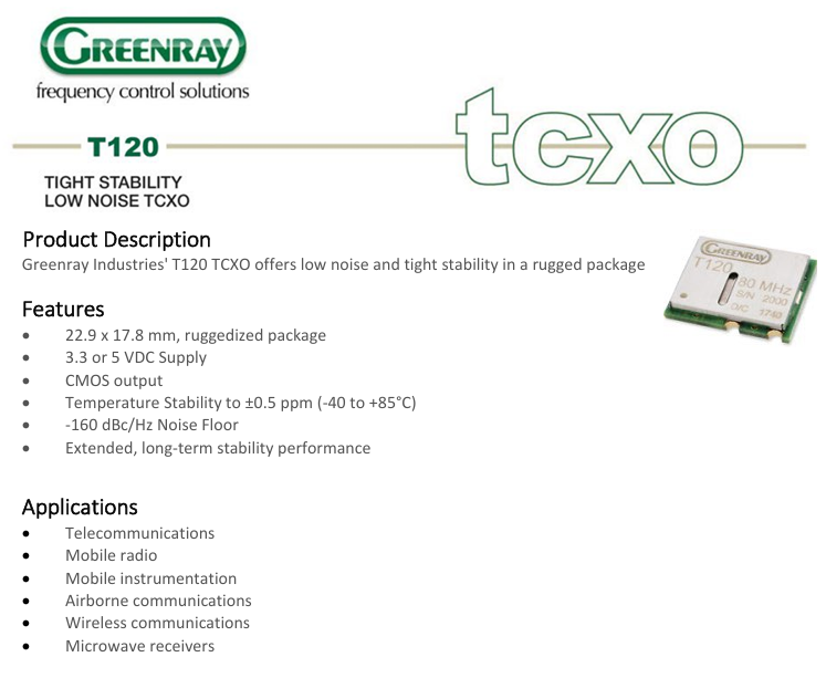 美國(guó)格林雷晶振Greenray之T120 TCXO產(chǎn)品剖析